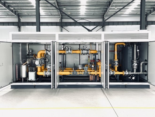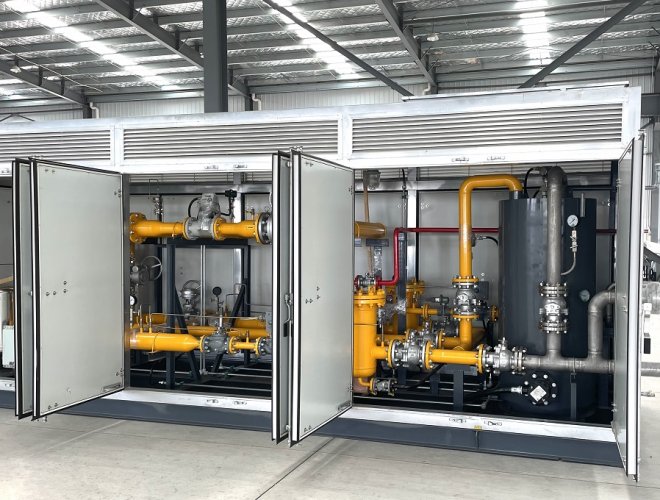 客戶在連續(xù)使用氣體時,對氣體的需求是要求氣體壓力穩(wěn)定在一定范圍內(nèi)。為了結算氣體費用或內(nèi)部核算成本需要,還要對使用的氣體進行計量。為了實現(xiàn)以上的功能,將調壓和計量組合在一起的氣體設備叫調壓計量撬。調壓計量撬由矩形撬塊、箱體、調節(jié)匯管、控制閥、計量管、流量計、調節(jié)閥、調節(jié)管、過濾器、出氣管、進氣匯管、進氣口、出氣匯管、排污管和安全放氣閥組成。有的裝置內(nèi)需要加入加臭系統(tǒng)、助燃劑等裝置。