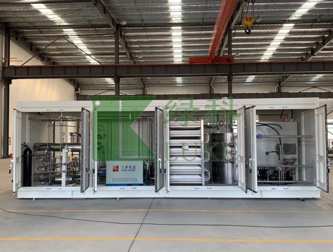 氣化增壓計量撬是把液態(tài)氣體通過高壓柱塞泵增壓至氣體需要的出口壓力,高壓液態(tài)氣體通過氣化器氣化,輸出穩(wěn)定高壓氣體的一種裝置。增壓計量撬由撬塊、箱體、高壓柱塞泵、控制閥、流量計、過濾器、出氣管、進氣匯管、進氣口、出氣匯管、排污管和安全放氣閥等部件組成。根據(jù)用戶需求可增加加臭等其它系統(tǒng)裝置。